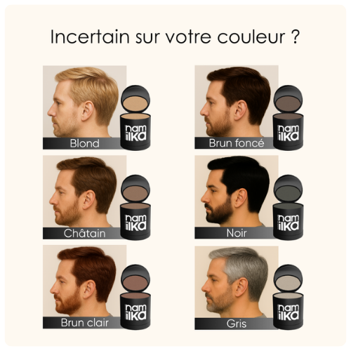 Même sur les zones qui semblent dégarnies, il reste souvent des cheveux très fins ou clairs. La poudre va justement s’y accrocher pour combler visuellement les trous et créer un effet de densité naturelle. C’est ce qui permet d’obtenir un rendu homogène, même en cas de perte de cheveux marquée.